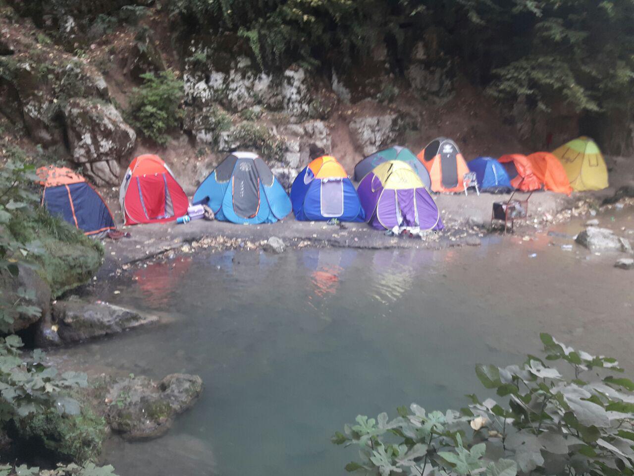 ساعت ۱/۳۰ نیمه شب در پای آبشار با بر پایی چادرها مستقر گشته و دوستان عزیز بخواب ناز فرو رفتند .